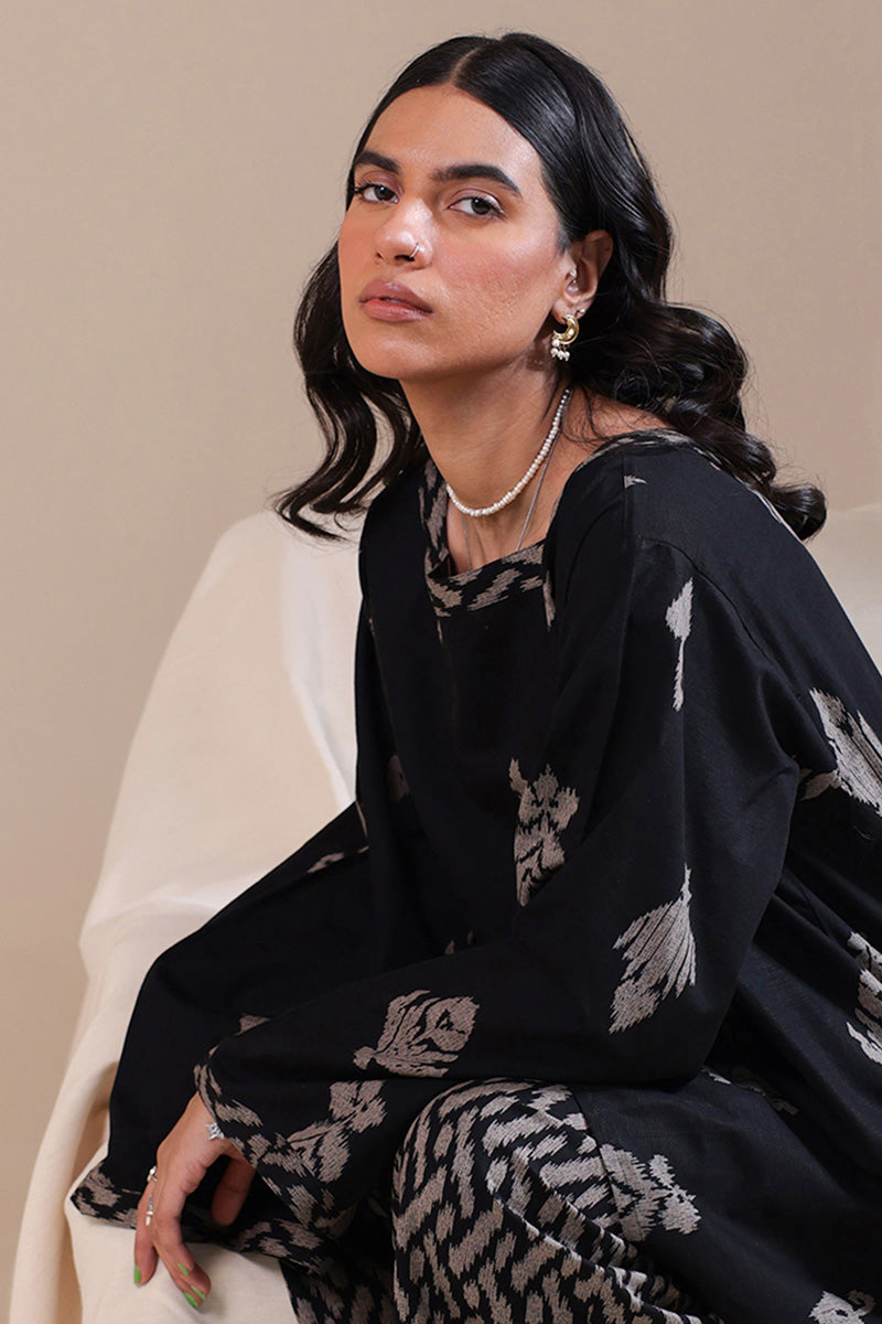 An A-line printed shirt with a square neckline, paired with complementary printed culottes for a coordinated look.