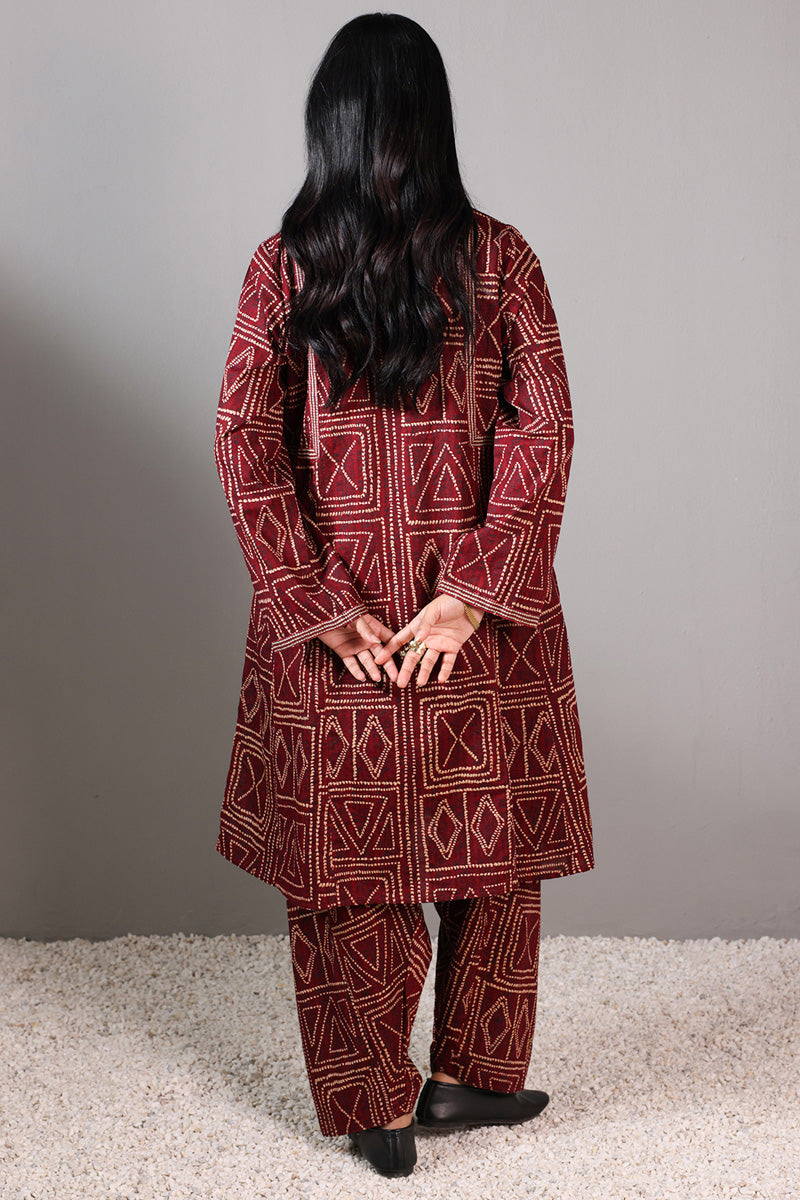 A classic-fit printed A-line paneled shirt with a round neckline and V-slit, paired with a matching printed classic-fit shalwar.